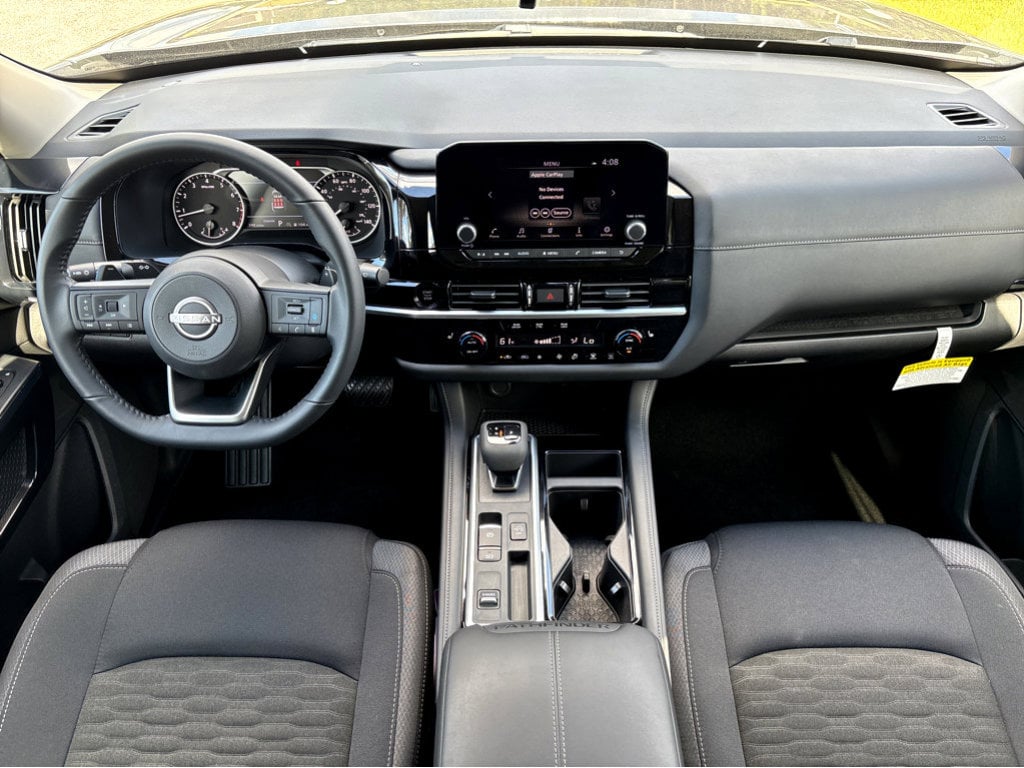 Vaden is pleased to offer this Gun Metallic 2025 Nissan Pathfinder SV with Charcoal Cloth... Beautifully equipped with 3rd row seats: bench, 4-Wheel Disc Brakes, 6 Speakers, ABS brakes, Air Conditioning, Alloy wheels, AM/FM radio: SiriusXM, Auto High-beam Headlights, Automatic temperature control, Bench Seat Carpeted Floor Mats (Set of 4), Black Splash Guards (Set of 4), Brake assist, Bumpers: body-color, Cloth Seating Surfaces, Cross Bars, Delay-off headlights, Driver door bin, Driver vanity mirror, Dual front impact airbags, Dual front side impact airbags, Electronic Stability Control, Emergency communication system, Four wheel independent suspension, Front anti-roll bar, Front Bucket Seats, Front Center Armrest, Front dual zone A/C, Front reading lights, Fully automatic headlights, Heated door mirrors, Heated Front Bucket Seats, Heated front seats, Illuminated entry, Knee airbag, Leather steering wheel, Low tire pressure warning, NissanConnect featuring Apple CarPlay and Android Auto, Occupant sensing airbag, Outside temperature display, Overhead airbag, Overhead console, Panic alarm, Passenger door bin, Passenger vanity mirror, Power door mirrors, Power driver seat, Power Liftgate, Power steering, Power windows, Radio data system, Radio: AM/FM Audio System w/NissanConnect, Rear air conditioning, Rear anti-roll bar, Rear Parking Sensors, Rear reading lights, Rear seat center armrest, Rear side impact airbag, Rear window defroster, Rear window wiper, Reclining 3rd row seat, Remote keyless entry, Security system, Speed control, Speed-sensing steering, Split folding rear seat, Spoiler, Steering wheel mounted audio controls, Tachometer, Telescoping steering wheel, Tilt steering wheel, Traction control, Trip computer, Turn signal indicator mirrors, Variably intermittent wipers, and Wheels: 18" x 8J Painted Alloy! Big City Deals, Small Town Feel! POWER PACKAGE ., POWER MIRROR PACKAGE.