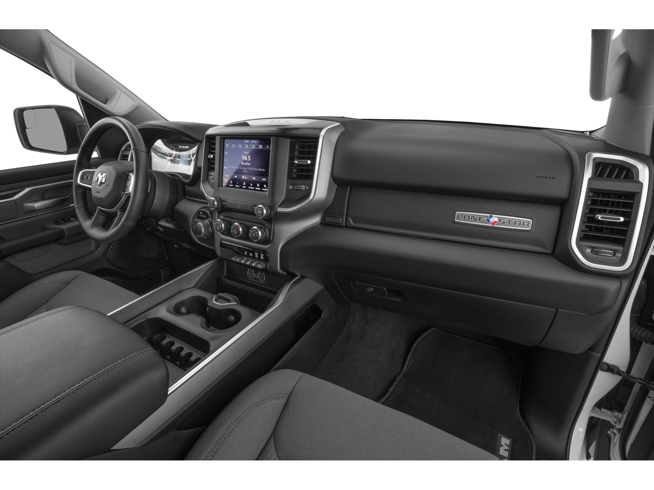 Vaden is pleased to offer 2019 Ram 1500 Big Horn/Lone Star in Diamond Black Crystal Pearlcoat, Beautifully equipped with all the essentials and then some! Big Horn Non-BSG Level 2 Equipment Group (DISC) (Cluster 7.0 TFT Color Display, ParkSense Front/Rear Park Assist w/Stop, Radio: Uconnect 4 w/8.4 Display, Remote Start System, and Single Disc Remote CD Player), Black Appearance Package (3 Rear Seat Head Restraints, 4 Way Front Headrests, Deluxe Cloth Bucket Seats, Front Seat Back Map Pockets, Rear 60/40 Folding Seat, and Wheels: 20 x 9 Cast Aluminum Black), Premium Lighting Group (Front LED Fog Lamps, LED Reflector Headlamps, and LED Taillamps), Quick Order Package 25Z Big Horn/Lone Star, 4-Wheel Disc Brakes, 48V Belt Starter Generator, 6 Speakers, ABS brakes, Air Conditioning, Alloy wheels, AM/FM radio, Brake assist, Bumpers: chrome, Cloth Bench Seat, Compass, Delay-off headlights, Driver door bin, Dual front impact airbags, Dual front side impact airbags, Electronic Stability Control, Front & Rear Rubber Floor Mats, Front anti-roll bar, Front Center Armrest w/Storage, Front fog lights, Front reading lights, Front wheel independent suspension, Fully automatic headlights, GPS Antenna Input, Heated door mirrors, Illuminated entry, Leather steering wheel, Low tire pressure warning, Occupant sensing airbag, Outside temperature display, Overhead airbag, Overhead console, Panic alarm, ParkView Rear Back-Up Camera, Passenger door bin, Passenger vanity mirror, Power door mirrors, Power steering, Power windows, Radio data system, Radio: Uconnect 3 w/5 Display, Rear anti-roll bar, Rear seat center armrest, Rear step bumper, Remote keyless entry, Speed control, Split folding rear seat, Tachometer, Telescoping steering wheel, Tilt steering wheel, Traction control, Trip computer, Variably intermittent wipers, Voltmeter, Wheel to Wheel Side Steps, and Wheels: 18 x 8