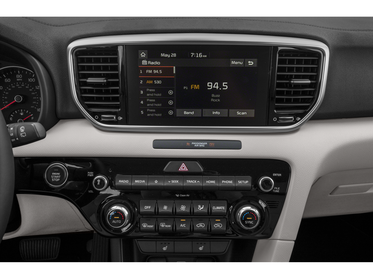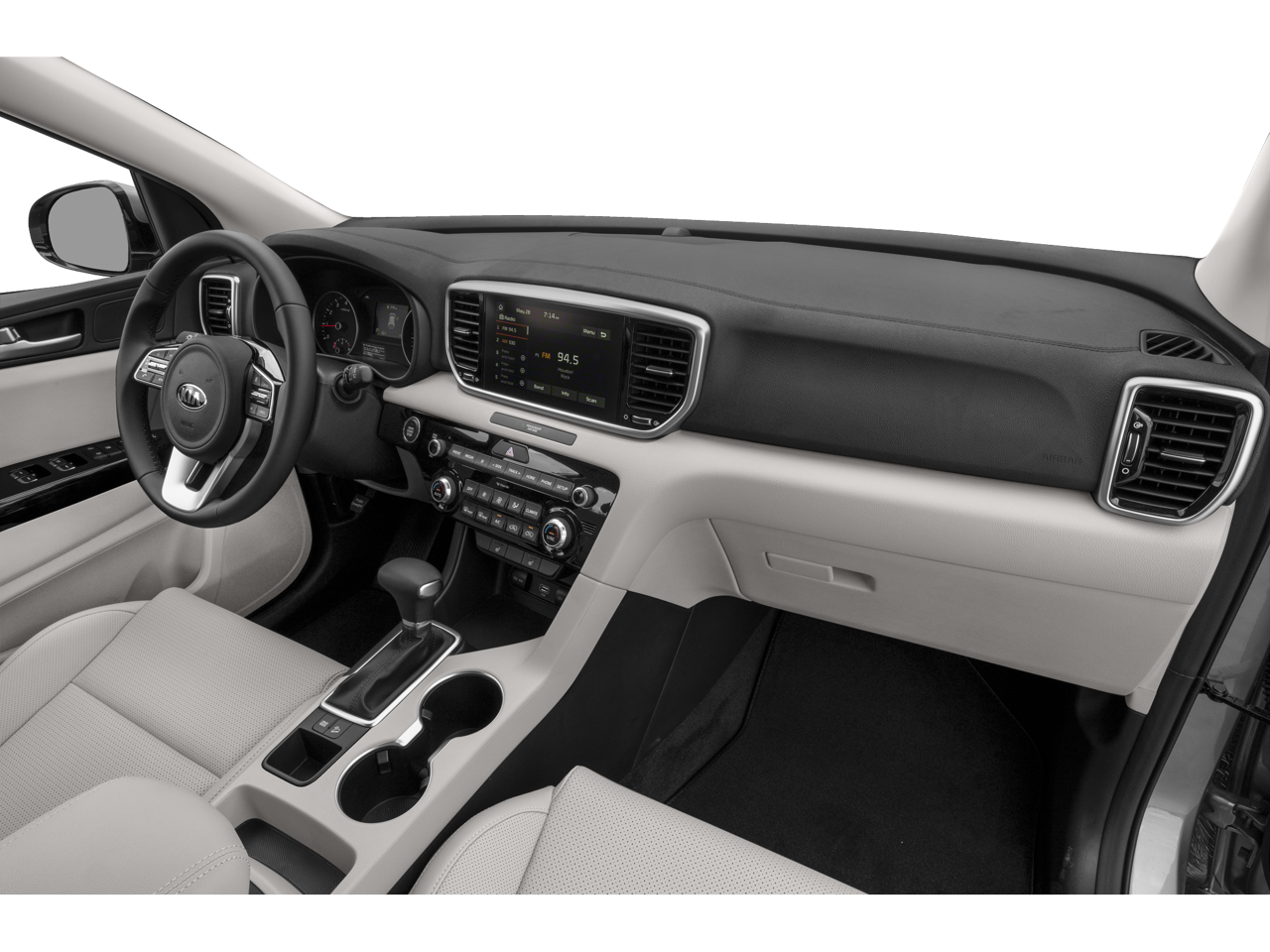 Vaden is pleased to offer this Sparkling Silver 2020 Kia Sportage EX with Black Leather... Beautifully equipped with EX Technology Package (8-Way Power Adjustable Passenger Seat, Auto-Dimming Rear-View Mirror w/Homelink & Compass, Electronic Parking Brake (EPB), Front & Rear Park Assist System, Heated Steering Wheel, Leather Seat Trim, LED Interior Lighting, Panoramic Sunroof, Radio: AM/FM/MP3 Premium Audio System, Smart Cruise Control w/Stop & Go, and Ventilated Front Seats), 18" Alloy Wheels, 4-Wheel Disc Brakes, 6 Speakers, ABS brakes, Air Conditioning, Alloy wheels, AM/FM radio, Apple CarPlay & Android Auto, Auto High-beam Headlights, Automatic temperature control, Axle Ratio: TBD, Brake assist, Bumpers: body-color, Cargo Cover, Carpet Floor Mats, Delay-off headlights, Driver door bin, Driver vanity mirror, Dual front impact airbags, Dual front side impact airbags, Electronic Stability Control, Exterior Parking Camera Rear, Four wheel independent suspension, Front anti-roll bar, Front Bucket Seats, Front Center Armrest, Front dual zone A/C, Front fog lights, Front reading lights, Fully automatic headlights, Heated door mirrors, Heated Front Bucket Seats, Heated front seats, Illuminated entry, Leather Shift Knob, Leather steering wheel, Leatherette Seat Trim, Low tire pressure warning, Occupant sensing airbag, Outside temperature display, Overhead airbag, Overhead console, Panic alarm, Passenger door bin, Passenger vanity mirror, Power door mirrors, Power driver seat, Power Liftgate, Power steering, Power windows, Radio: AM/FM/MP3, Rear anti-roll bar, Rear seat center armrest, Rear window defroster, Rear window wiper, Remote keyless entry, Roof rack: rails only, Security system, Speed control, Speed-sensing steering, Split folding rear seat, Spoiler, Steering wheel mounted audio controls, Tachometer, Telescoping steering wheel, Tilt steering wheel, Tow Hitch, Traction control, Trip computer, Turn signal indicator mirrors, and Variably intermittent wipers! ***Advertised price expires daily, subject to availability. Accessories and aftermarket products might change the advertised price. Pricing includes a $1000 discount for dealership arranged financing AND $1000 Trade-In Assistance, subject to credit approval! Residency restrictions do apply*** POWER PACKAGE ., POWER MIRROR PACKAGE.