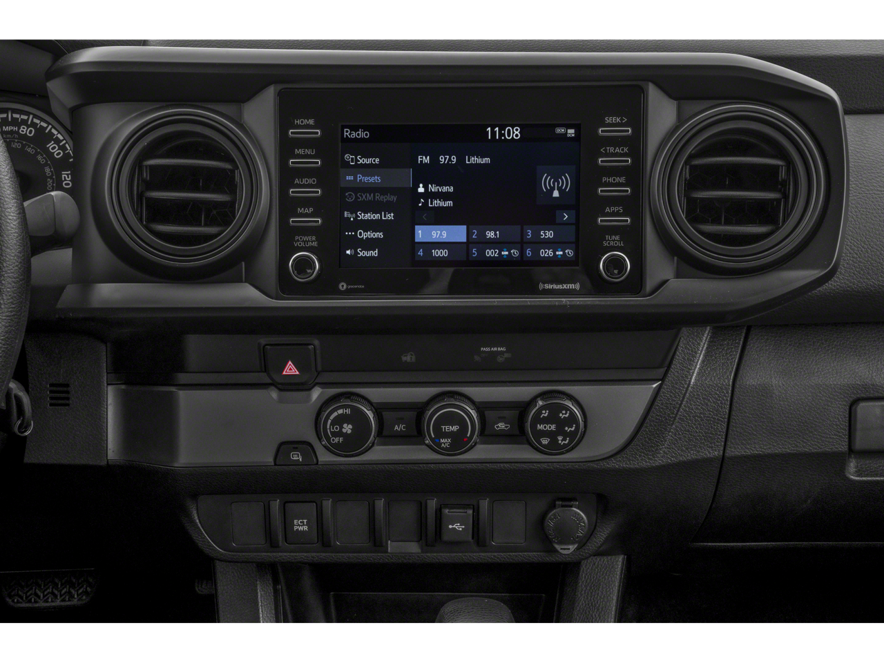 - Radio w/Seek-Scan, Clock, Speed Compensated Volume Control and Steering Wheel Controls