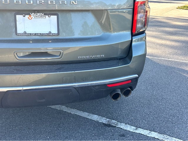 Vaden is pleased to offer 2023 Chevrolet Suburban Premier in Silver Sage Metallic, Beautifully equipped with all the essentials and then some! Preferred Equipment Group 1LZ (1st & 2nd Row Color-Keyed Carpeted Floor Mats, 3rd Row 60/40 Power-Folding Split-Bench, Auto-Dimming Inside Rear-View Mirror, Bose 10-Speaker Surround w/CenterPoint, Bright Front & Rear Door Sill Plates, Chrome Door Handles w/Body-Color Strip, Chrome Mirror Caps, Color-Keyed Carpeting Floor Covering, Driver & Front Outboard Passenger Airbags, Dual Exhaust System, Enhanced Driver Information Center, Floor Console, Hands-Free Rear Power Programmable Liftgate, Heated & Ventilated Driver & Front Passenger Seats, Heated 2nd Row Outboard Seats, Heated Driver & Front Passenger Seats, Heated Steering Wheel, Infotainment Display, Lane Change Alert w/Side Blind Zone Alert, LED Daytime Running Lamps, Memory Settings, Outside Heated Power-Adjustable Mirrors, Power Release 2nd Row Bucket Seats, Power Tilt & Telescopic Steering Column, Rear Cross Traffic Alert, Remote Start, Safety Alert Seat, SiriusXM Radio w/360L, Universal Home Remote, Wireless Charging, and Wrapped Steering Wheel), 10 Speakers, 20" x 9" Polished Aluminum Wheels, 3.23 Rear Axle Ratio, 3rd row seats: split-bench, 4-Wheel Disc Brakes, ABS brakes, Adaptive suspension, Air Conditioning, Alloy wheels, AM/FM radio: SiriusXM with 360L, Apple CarPlay/Android Auto, Auto High-beam Headlights, Auto-dimming door mirrors, Auto-dimming Rear-View mirror, Auto-leveling suspension, Automatic temperature control, Brake assist, Bumpers: body-color, Compass, Delay-off headlights, Driver door bin, Driver vanity mirror, Dual front impact airbags, Dual front side impact airbags, Electronic Stability Control, Emergency communication system: OnStar and Chevrolet connected services capable, Four wheel independent suspension, Front anti-roll bar, Front Bucket Seats, Front Center Armrest, Front dual zone A/C, Front reading lights, Fully automatic headlights, Garage door transmitter, Heated door mirrors, Heated front seats, Heated rear seats, Heated steering wheel, Illuminated entry, Low tire pressure warning, Magnetic Ride Control Suspension, Memory seat, Navigation System, Not Equipped w/4-Way Driver & Fr Pass Pwr Lumbar, Occupant sensing airbag, Outside temperature display, Overhead airbag, Overhead console, Panic alarm, Passenger door bin, Passenger vanity mirror, Perforated Leather Seating Surfaces, Power door mirrors, Power driver seat, Power Liftgate, Power passenger seat, Power steering, Power windows, Premium audio system: Chevrolet Infotainment 3 Premium, Radio: Chevrolet Infotainment 3 Premium System, Rain sensing wipers, Rear air conditioning, Rear anti-roll bar, Rear reading lights, Rear window defroster, Rear window wiper, Remote keyless entry, Roof rack: rails only, Security system, Speed control, Speed-sensing steering, Split folding rear seat, Spoiler, Steering wheel memory, Steering wheel mounted audio controls, Tachometer, Telescoping steering wheel, Tilt steering wheel, Traction control, Trip computer, Turn signal indicator mirrors, Variably intermittent wipers, Ventilated front seats, and Voltmeter. ONE OWNER, CLEAN CARFAX HISTORY, Bluetooth®, BACKUP CAMERA, NAVIGATION SYSTEM NAV GPS, CLIMATE PACKAGE, MEMORY PACKAGE, HEAT PACKAGE : HEATED SEATS, TOW PACKAGE TRAILER PACKAGE, PREMIUM LEATHER SEATS, SOUND PACKAGE - SIRIUS XM SATELLITE RADIO, 3RD ROW SEATING, PREMIUM WHEELS, PREMIUM PACKAGE.