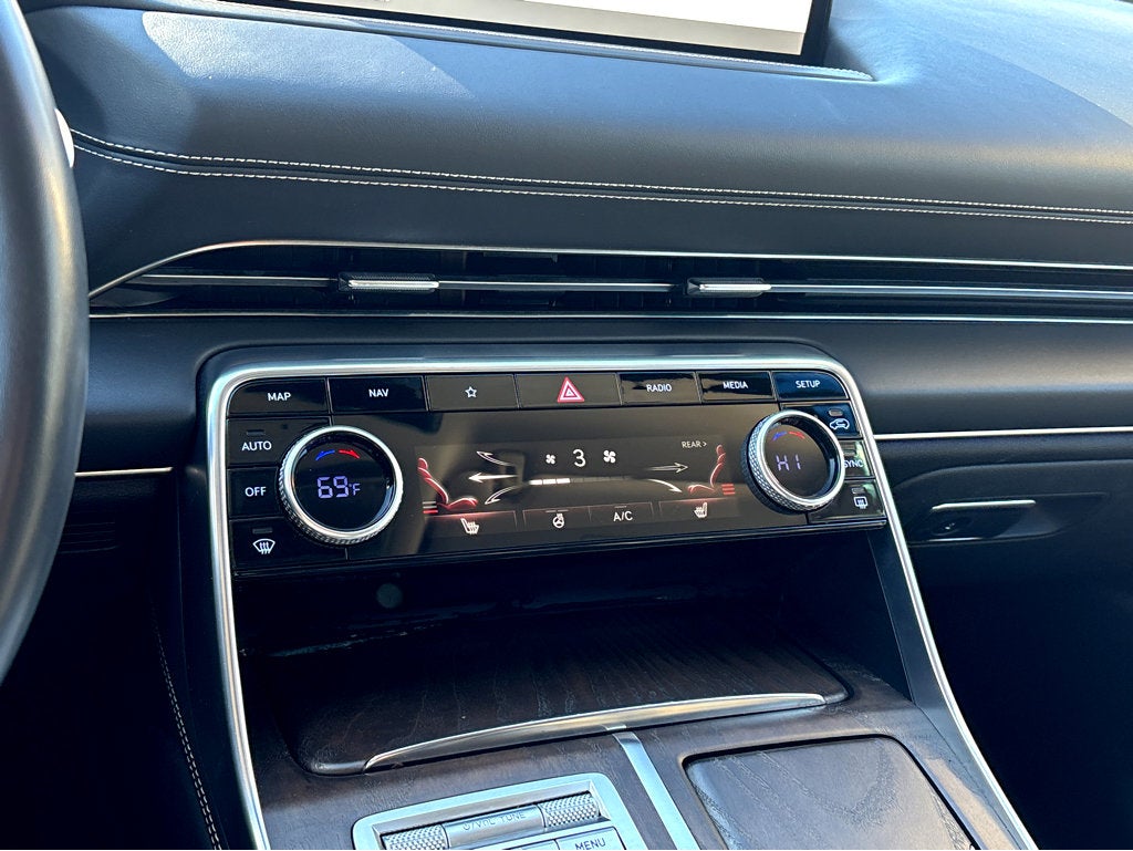 - Radio:14.5" Navigation System w/AM/FM/HD Radio -inc: SiriusXM Radio w/90-day subscription (not available in AK or HI), Apple CarPlay and Android Auto, 12 speakers, Bluetooth® hands-free phone system w/audio streaming, wireless phone charger, Wi-Fi hotspot, steering wheel controls, USB and Genesis Connected Services