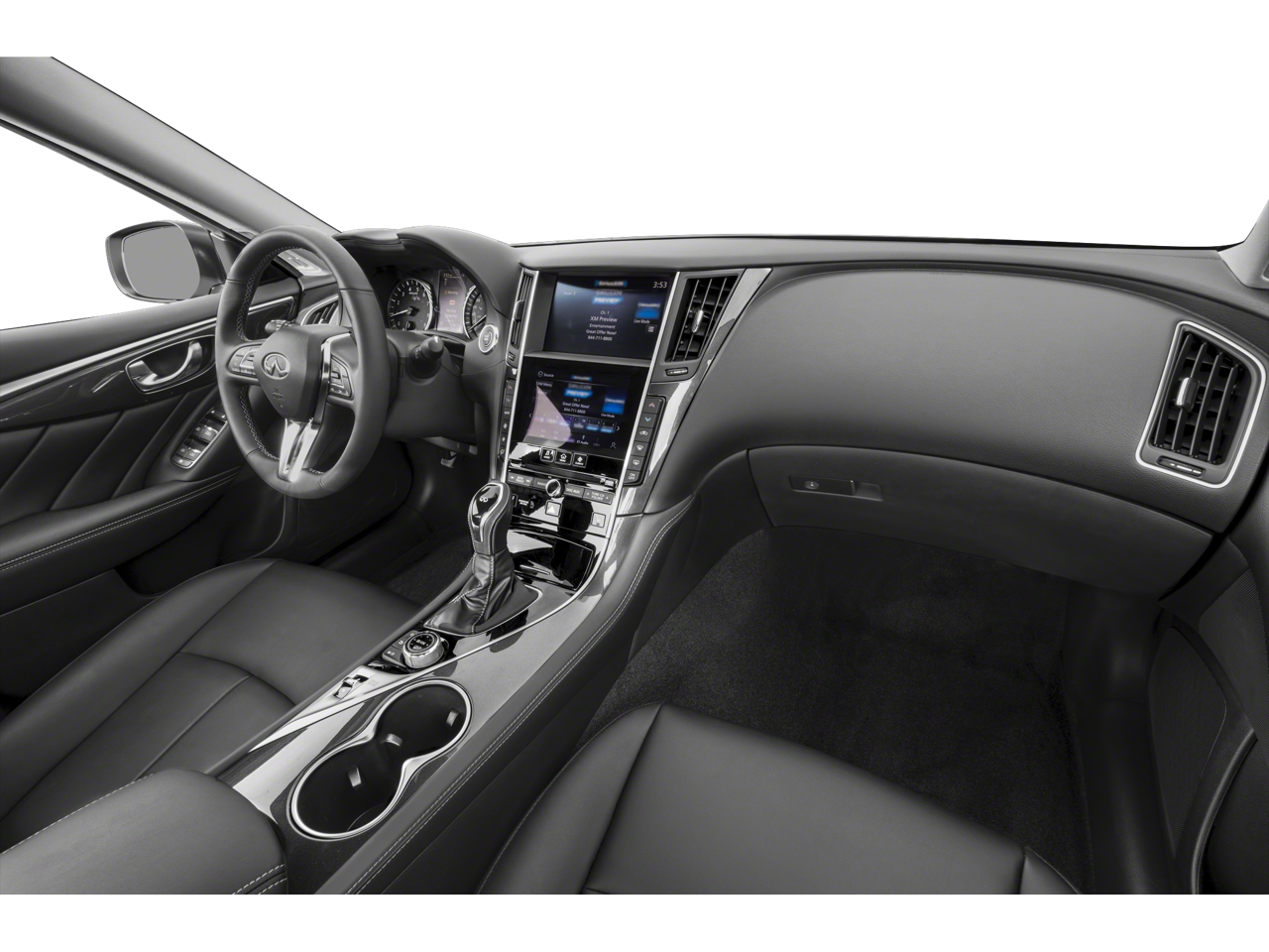 - Radio: INFINITI InTouch Dual HD Display System -inc: 16 speaker Bose Performance Series audio w/Bose Centerpoint simulated surround, wireless Apple CarPlay, Siri Eyes Free, Android Auto, Bluetooth® hands-free phone system w/text messaging assistant, voice recognition for audio, Bluetooth® and vehicle information, streaming audio via Bluetooth®, 2 illuminated USB connection ports (1 type A, 1 type C), auxiliary audio input, HD Radio, SiriusXM radio w/advanced audio features w/3 month complimentary trial and Wi-Fi hotspot