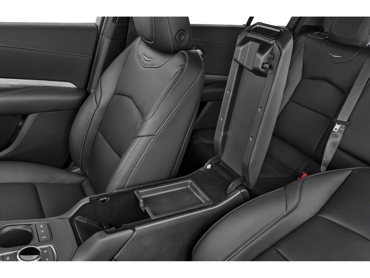 - Opens or closes when the system senses the key fob and the driver extends their foot under the left-hand side of the rear bumper over an image of the Cadillac Crest projected under the vehicle