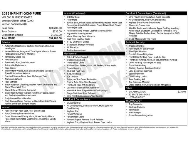 Elevate your driving experience with the 2025 INFINITI QX60 PURE. Discover the perfect blend of style, performance, and advanced technology that will exceed your expectations. Contact us today to schedule a test drive and experience the difference for yourself.