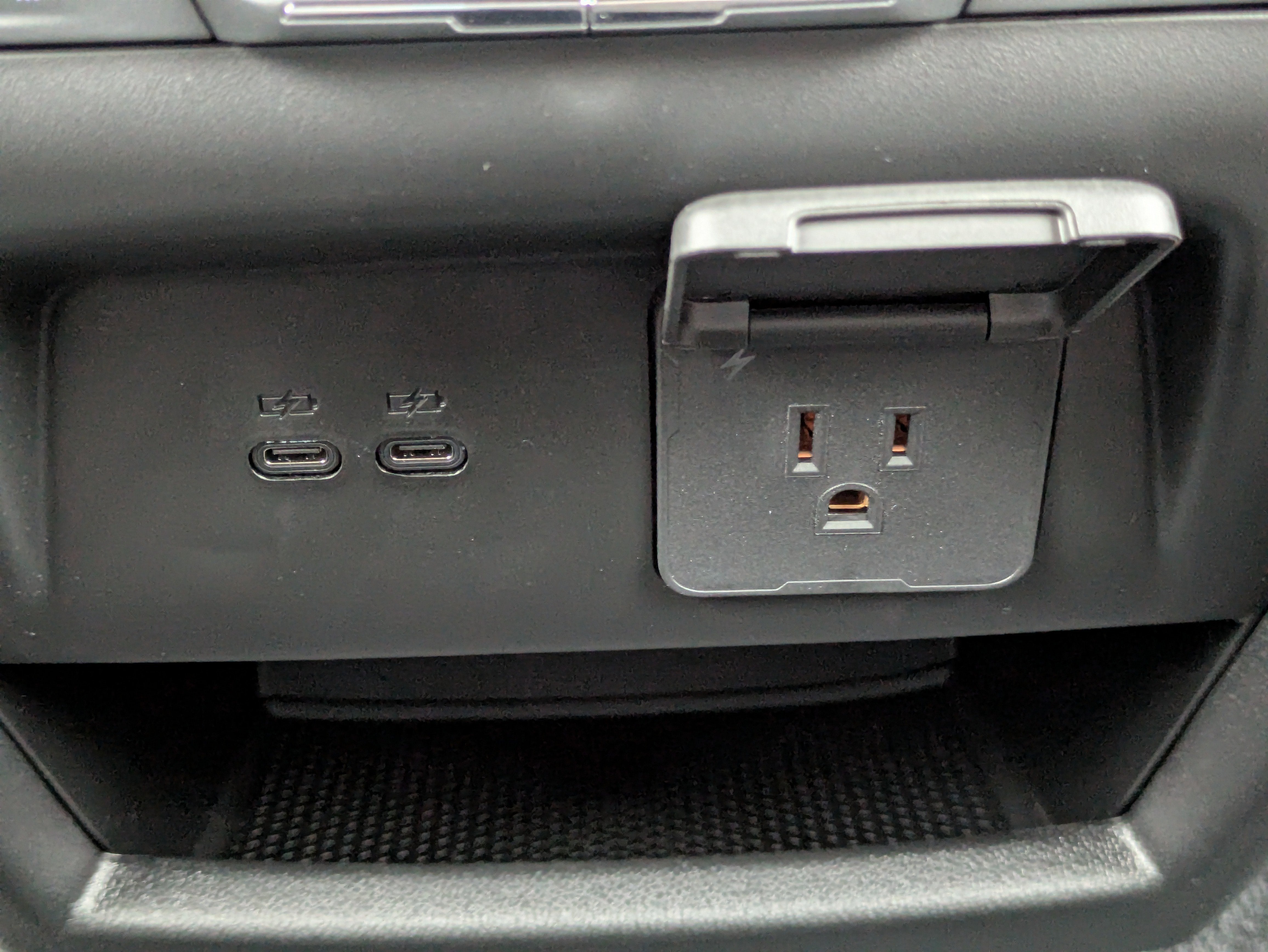 - Power outlet, 120-volt, located on the rear of center console