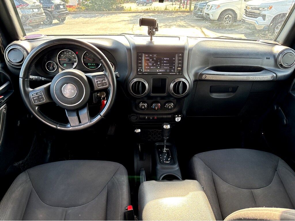 Vaden is pleased to offer this Rhino Clearcoat 2018 Jeep Wrangler JK Unlimited Willys Wheeler with Black Cloth... Beautifully equipped with Connectivity Group (Tire Pressure Monitoring Display, Uconnect Voice Command w/Bluetooth, and Vehicle Information Center), Quick Order Package 24K Willys Wheeler (3.73 Rear Axle Ratio, 4-Wheel Drive Swing Gate Decal, Anti-Spin Differential Rear Axle, BF Goodrich Brand Tires, Black Jeep Grille Badge, Deep Tint Sunscreen Windows, Jeep Trail Rated Kit, Low Gloss Wrangler JK Decal, Performance Suspension, Rear Passenger Assist Handles Kit, Wheels: 17" x 7.5" High Gloss Black Willys, Willys Hood Decal, and Willys Wheeler Grille), Trailer Tow Group (Class II Receiver Hitch and Trailer Tow w/4-Pin Connector Wiring), Willys Wheeler Package, Cloth Seats w/Adjustable Head Restraints, 1-Yr SiriusXM Radio Service, 16" x 7.0" Luxury Styled Steel Wheels, 4-Wheel Disc Brakes, 8 Speakers, ABS brakes, Air Conditioning, AM/FM radio, Audio Jack Input for Mobile Devices, Black 3-Piece Hard Top, Brake assist, CD player, Compass, Driver door bin, Driver Height Adjuster Seat, Driver vanity mirror, Dual front impact airbags, Electronic Stability Control, Freedom Panel Storage Bag, Front anti-roll bar, Front Bucket Seats, Front Center Armrest w/Storage, Front fog lights, Integrated roll-over protection, Low tire pressure warning, Normal Duty Suspension, Occupant sensing airbag, Outside temperature display, Passenger door bin, Passenger vanity mirror, Power steering, R1234YF A/C Refrigerant, Radio: 130, Radio: 430, Rear anti-roll bar, Rear Window Defroster, Rear Window Wiper/Washer, Remote USB Port, Speed control, Split folding rear seat, Steering wheel mounted audio controls, Tachometer, Tilt steering wheel, Traction control, Trip computer, Tubular Side Steps, and Variably intermittent wipers! REMOTE KEYLESS ENTRY, BLUETOOTH, BACKUP CAMERA, POWER MIRROR PACKAGE, AWD/4X4/FOUR WHEEL DRIVE, PREMIUM WHEELS, 3.73 Rear Axle Ratio, 4-Wheel Drive Swing Gate Decal, Anti-Spin Differential Rear Axle, BF Goodrich Brand Tires, Black Jeep Grille Badge, Class II Receiver Hitch, Cloth Seats w/Adjustable Head Restraints, Connectivity Group, Deep Tint Sunscreen Windows, Jeep Trail Rated Kit, Low Gloss Wrangler JK Decal, Performance Suspension, Quick Order Package 24K Willys Wheeler, Rear Passenger Assist Handles Kit, Tire Pressure Monitoring Display, Trailer Tow Group, Trailer Tow w/4-Pin Connector Wiring, Uconnect Voice Command w/Bluetooth, Vehicle Information Center, Wheels: 17" x 7.5" High Gloss Black Willys, Willys Hood Decal, Willys Wheeler Grille, Willys Wheeler Package.