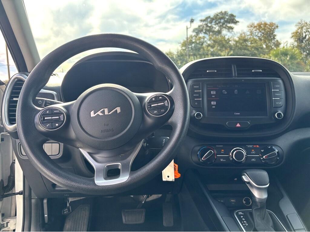 Vaden is pleased to offer this Snow White Pearl 2023 Kia Soul LX with Black Cloth... Beautifully equipped with LX Technology Package (16" Alloy Wheels, Blind-Spot Collision-Avoidance Assist, Lane Change Assist, and Rear Cross-Traffic Collision Avoidance Assist), 16" Steel Wheels, 4-Wheel Disc Brakes, 6 Speakers, ABS brakes, Air Conditioning, AM/FM radio, Apple CarPlay & Android Auto, Auto High-beam Headlights, Brake assist, Bumpers: body-color, Carpeted Floor Mats, Compass, Delay-off headlights, Driver door bin, Driver vanity mirror, Dual front impact airbags, Dual front side impact airbags, Electronic Stability Control, Exterior Parking Camera Rear, Front anti-roll bar, Front Bucket Seats, Front Center Armrest, Front reading lights, Front wheel independent suspension, Fully automatic headlights, Illuminated entry, Low tire pressure warning, Occupant sensing airbag, Outside temperature display, Overhead airbag, Overhead console, Panic alarm, Passenger door bin, Passenger vanity mirror, Power door mirrors, Power steering, Power windows, Radio data system, Radio: AM/FM/MP3/HD Audio System, Rear window defroster, Rear window wiper, Remote keyless entry, Speed control, Speed-sensing steering, Split folding rear seat, Steering wheel mounted audio controls, Tachometer, Telescoping steering wheel, Tilt steering wheel, Traction control, Trip computer, Variably intermittent wipers, and Woven & Tricot Cloth Seat Trim! ONE OWNER, CLEAN CARFAX HISTORY, PUSH BUTTON STARTER, REMOTE KEYLESS ENTRY, BLUETOOTH, BACKUP CAMERA, SOUND PACKAGE - SIRIUS XM SATELLITE RADIO, POWER MIRROR PACKAGE, CLIMATE PACKAGE, PREMIUM WHEELS, 16" Alloy Wheels, Blind-Spot Collision-Avoidance Assist, Lane Change Assist, LX Technology Package, Rear Cross-Traffic Collision Avoidance Assist.