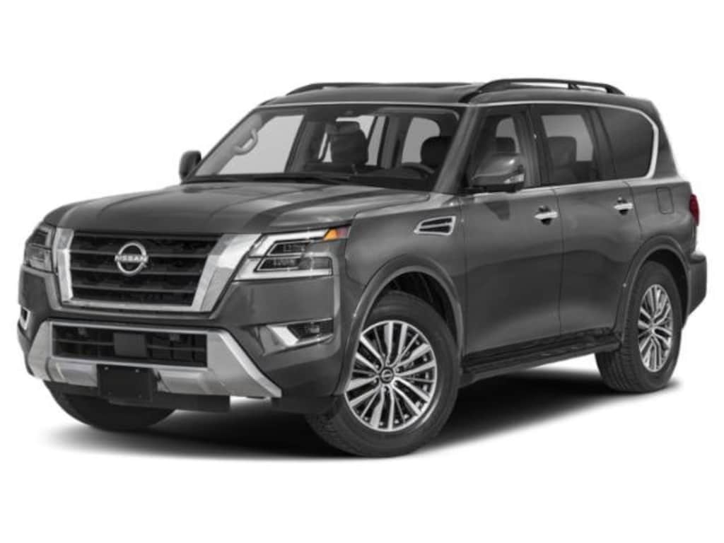 Vaden is pleased to offer this Gun Metallic 2023 Nissan Armada SL with Charcoal Leather... Beautifully equipped with Cargo Package, Navigation System, 13 Speakers, 2.94 Axle Ratio, 3rd Row Carpeted Floor Mats - Bench Seat, 3rd row seats: split-bench, 4-Wheel Disc Brakes, ABS brakes, Air Conditioning, Alloy wheels, AM/FM radio: SiriusXM, Anti-whiplash front head restraints, Auto High-beam Headlights, Auto tilt-away steering wheel, Auto-dimming door mirrors, Auto-dimming Rear-View mirror, Auto-leveling suspension, Automatic temperature control, Bose 13-Speaker Premium Audio System, Brake assist, Bumpers: body-color, Cross Bars, Delay-off headlights, Driver door bin, Driver vanity mirror, Dual front impact airbags, Dual front side impact airbags, Electronic Stability Control, Emergency communication system: NissanConnect Services, Exterior Parking Camera Rear, Four wheel independent suspension, Front anti-roll bar, Front Bucket Seats, Front Center Armrest, Front dual zone A/C, Front fog lights, Front reading lights, Fully automatic headlights, Garage door transmitter: HomeLink, Heated door mirrors, Heated Front Bucket Seats, Heated front seats, Heated steering wheel, Illuminated entry, Illuminated Kick Plates, Knee airbag, Leather Shift Knob, Leather-Appointed Seat Trim, Low tire pressure warning, Memory seat, Nissan USB Charging Cable Set, NissanConnect featuring Apple CarPlay and Android Auto, Occupant sensing airbag, Outside temperature display, Overhead airbag, Overhead console, Panic alarm, Passenger door bin, Passenger vanity mirror, Power door mirrors, Power driver seat, Power Liftgate, Power moonroof, Power passenger seat, Power steering, Power windows, Premium audio system: Bose, Radio: NissanConnect w/SiriusXM, Rear air conditioning, Rear anti-roll bar, Rear reading lights, Rear seat center armrest, Rear window defroster, Rear window wiper, Reclining 3rd row seat, Remote keyless entry, Security system, Speed control, Speed-sensing steering, Speed-Sensitive Wipers, Split folding rear seat, Spoiler, Steering wheel memory, Steering wheel mounted audio controls, Tachometer, Telescoping steering wheel, Tilt steering wheel, Traction control, Trip computer, Turn signal indicator mirrors, Variably intermittent wipers, Voltmeter, and Wheels: 20" x 8J Painted Alloy! REMAINDER OF FACTORY WARRANTY, ONE OWNER, CLEAN CARFAX HISTORY, PUSH BUTTON STARTER, REMOTE KEYLESS ENTRY, BLUETOOTH, REMOTE START, BACKUP CAMERA, NAVIGATION SYSTEM NAV GPS, SUNROOF/MOONROOF, LEATHER SEATS, BOSE HIGH END SOUND PACKAGE, POWER MIRROR PACKAGE, REAR CLIMATE PACKAGE, HEAT PACKAGE : HEATED SEATS, 3RD ROW SEATING, HEATED SEATS, PREMIUM WHEELS, Cargo Package, Navigation System.