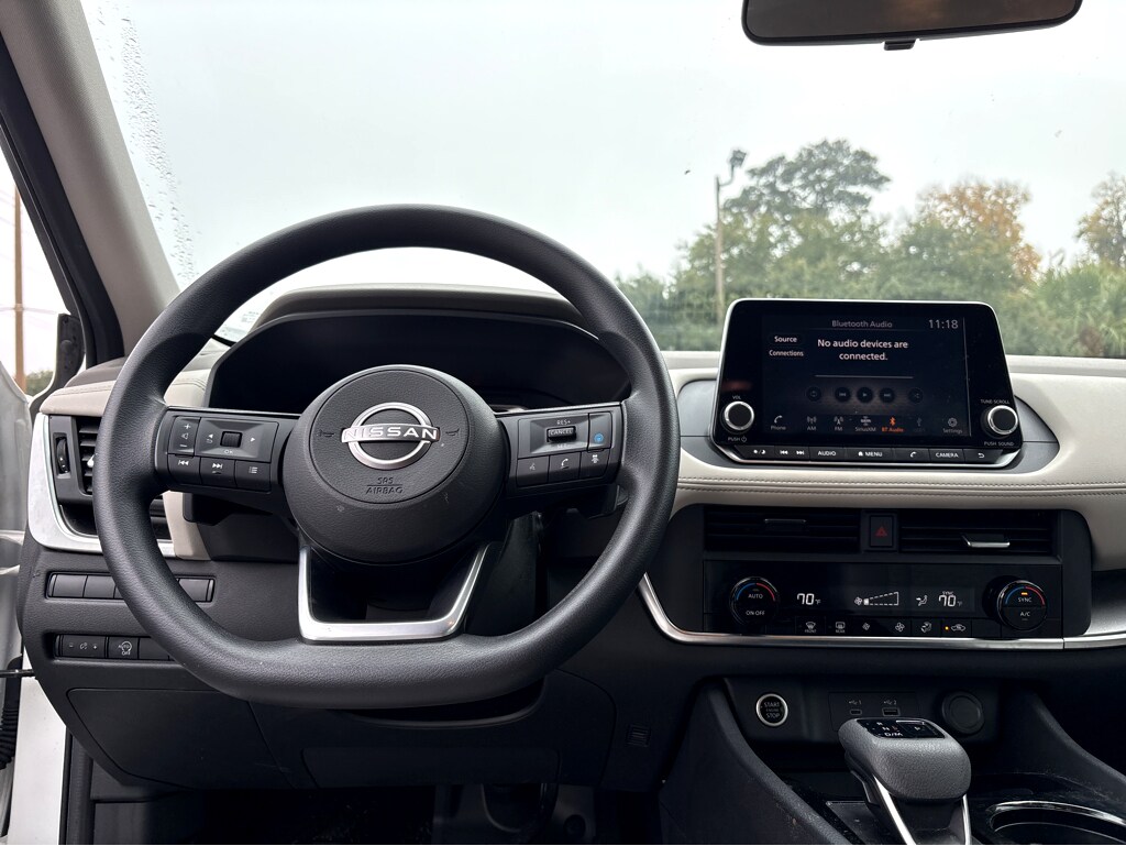 Vaden is pleased to offer this Pearl White Tricoat 2023 Nissan Rogue SV with Light Gray Cloth... Beautifully equipped with AWD, 18" Aluminum Alloy Wheels, 4-Wheel Disc Brakes, 5.604 Axle Ratio, 6 Speakers, ABS brakes, Air Conditioning, Alloy wheels, AM/FM Radio, AM/FM radio: SiriusXM, Auto High-beam Headlights, Automatic temperature control, Black Splash Guards (Set of 4), Brake assist, Bumpers: body-color, Cloth Seat Trim, Delay-off headlights, Driver door bin, Driver vanity mirror, Dual front impact airbags, Dual front side impact airbags, Electronic Stability Control, Emergency communication system: NissanConnect Services, First Aid Kit, Floor Mats w/1-Piece Cargo Area Protector, Four wheel independent suspension, Front anti-roll bar, Front Bucket Seats, Front Center Armrest, Front dual zone A/C, Front reading lights, Fully automatic headlights, Heated door mirrors, Illuminated entry, Knee airbag, Low tire pressure warning, NissanConnect featuring Apple CarPlay and Android Auto, Occupant sensing airbag, Outside temperature display, Overhead airbag, Overhead console, Panic alarm, Passenger door bin, Passenger vanity mirror, Power door mirrors, Power driver seat, Power steering, Power windows, Radio data system, Rear anti-roll bar, Rear Parking Sensors, Rear seat center armrest, Rear side impact airbag, Rear window defroster, Rear window wiper, Remote keyless entry, Special Paint - Scarlet Ember Tintcoat, Speed control, Speed-Sensitive Wipers, Split folding rear seat, Spoiler, Steering wheel mounted audio controls, Tachometer, Telescoping steering wheel, Tilt steering wheel, Traction control, Trip computer, and Variably intermittent wipers! REMAINDER OF FACTORY WARRANTY, ONE OWNER, PUSH BUTTON STARTER, REMOTE KEYLESS ENTRY, BLUETOOTH, REMOTE START, BACKUP CAMERA, POWER MIRROR PACKAGE, AWD/4X4/FOUR WHEEL DRIVE, PREMIUM WHEELS, AWD.