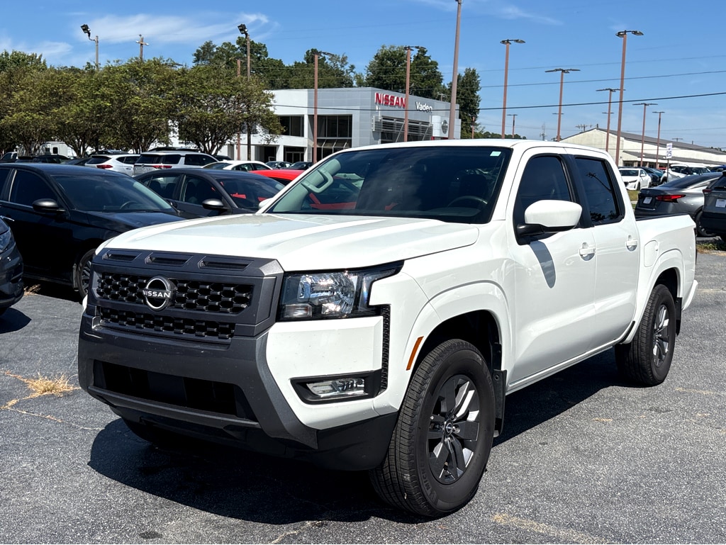 Vaden is pleased to offer this Glacier White 2025 Nissan Frontier SV with Charcoal Cloth... Beautifully equipped with SV Convenience Package (120V Power Outlet in Bed, 120V Power Outlet in Rear Center Console, Bed Under-Rail Lighting, Front Halogen Fog Lights, Heated Front Seats, Heated Leather Steering Wheel, Heated Outside Mirrors, HVAC - Dual-Zone Front Auto A/C, I-Key w/Request Switches on O/S Handles, Illuminated Locking Glove Box w/Damper, Leather Shift Lever, Remote Engine Starter, Spray-In Bedliner, Tow/Haul Mode Switch, Trailer Hitch w/Wiring Harness, and Utili-Track System), Telematics Delete Package (NissanConnect Services & Wi-Fi Hotspot Delete), Tow Package (T11) (DISC), 17" Alloy Wheels, 3.692 Axle Ratio, 4-Wheel Disc Brakes, 6 Speakers, ABS brakes, Air Conditioning, Alloy wheels, AM/FM radio: SiriusXM, Anti-whiplash front head restraints, Auto High-beam Headlights, Blind Spot Warning, Brake assist, Bumpers: body-color, Carpeted Floor Mats, Delay-off headlights, Driver door bin, Driver vanity mirror, Dual front impact airbags, Dual front side impact airbags, Electronic Stability Control, Electronic Tailgate Lock, Emergency communication system, Front anti-roll bar, Front Bucket Seats, Front Center Armrest, Front reading lights, Front wheel independent suspension, Fully automatic headlights, Illuminated entry, Knee airbag, Low tire pressure warning, Occupant sensing airbag, Overhead airbag, Overhead console, Panic alarm, Passenger door bin, Passenger vanity mirror, Power door mirrors, Power driver seat, Power steering, Power windows, Premium Cloth Seat Trim, Radio data system, Radio: SXM/AM/FM/AUX/USB Audio System, Rear anti-roll bar, Rear seat center armrest, Rear side impact airbag, Rear step bumper, Remote keyless entry, Security system, Speed control, Speed-sensing steering, Split folding rear seat, Steering wheel mounted audio controls, Tachometer, Telescoping steering wheel, Tilt steering wheel, Traction control, Trip computer, Variably intermittent wipers, Voltmeter, and Wireless Apple CarPlay/Wireless Android Auto! REMAINDER OF FACTORY WARRANTY, ONE OWNER, CLEAN CARFAX HISTORY, PUSH BUTTON STARTER, REMOTE KEYLESS ENTRY, BLUETOOTH, BACKUP CAMERA, POWER MIRROR PACKAGE, PREMIUM WHEELS, 120V Power Outlet in Bed, 120V Power Outlet in Rear Center Console, Bed Under-Rail Lighting, Front Halogen Fog Lights, Heated Front Seats, Heated Leather Steering Wheel, Heated Outside Mirrors, HVAC - Dual-Zone Front Auto A/C, I-Key w/Request Switches on O/S Handles, Illuminated Locking Glove Box w/Damper, Leather Shift Lever, NissanConnect Services & Wi-Fi Hotspot Delete, Remote Engine Starter, Spray-In Bedliner, SV Convenience Package, Telematics Delete Package, Tow Package (T11) (DISC), Tow/Haul Mode Switch, Trailer Hitch w/Wiring Harness, Utili-Track System.